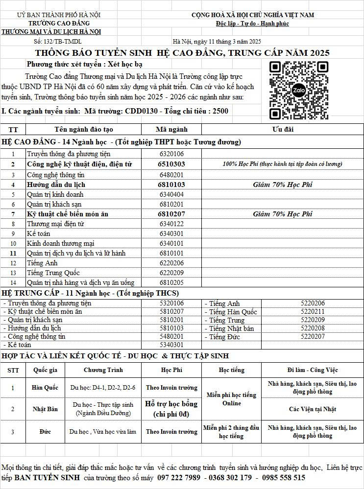 Cao đẳng Thương Mại và Du Lịch Hà Nội has posted 1 job